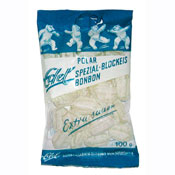 unverfälscht in diesem ungewickelten Bonbons im Beutel mit der weiß-blauen Rautenoptik.